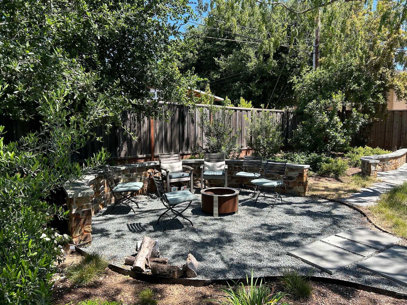 One of the pleasures of being here in Saratoga is sitting in Fraser’s garden as there are loads of shaded areas. This is his Fire Pit and we will enjoy a beer here in the evening as it gets dark.
