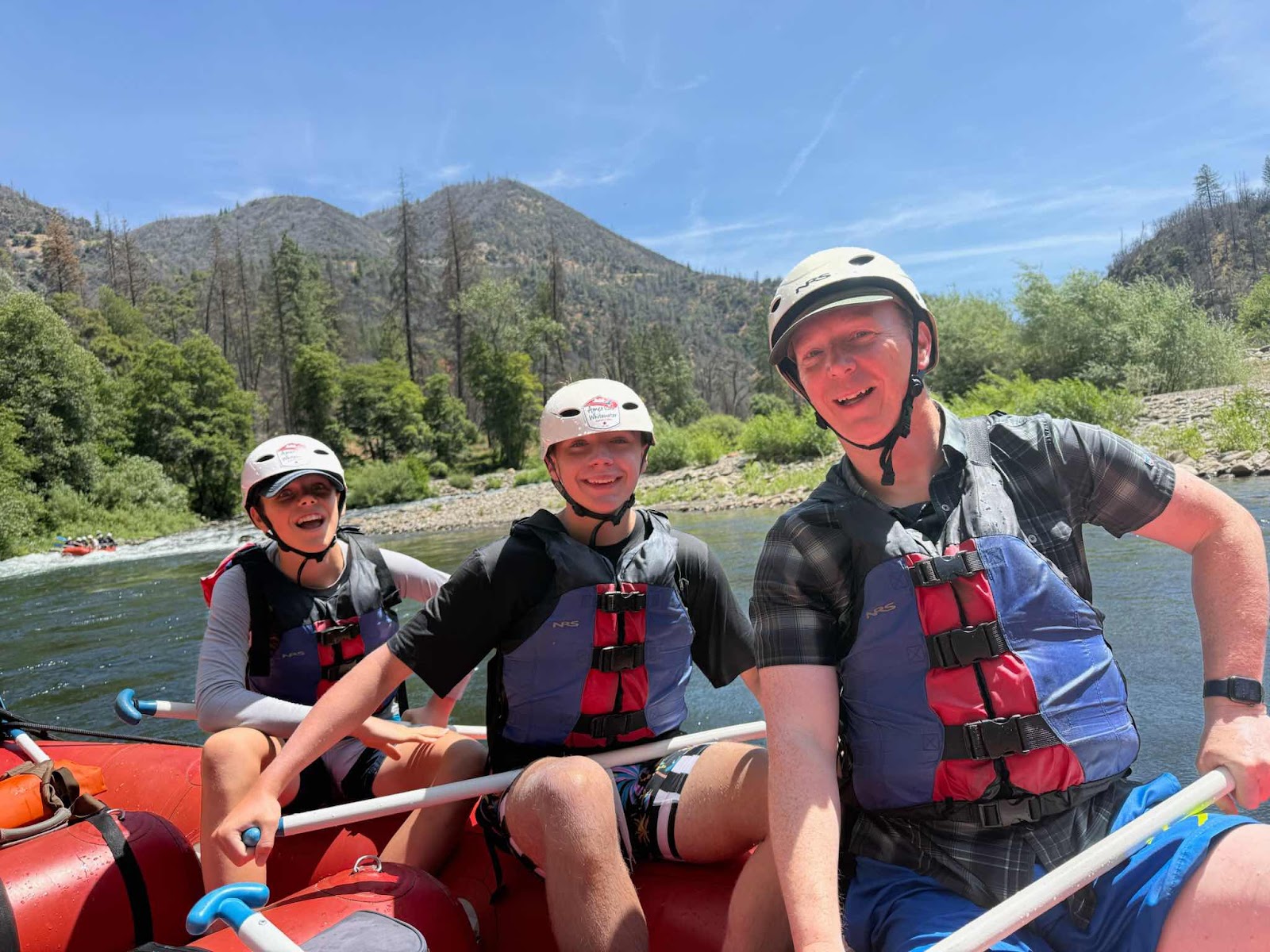 This week our grandson Tommy is 14 so Fraser took him into the Sierra Nevada Mountains for a White Water Rafting Trip. They were accompanied by a friend of Fraser’s and his sons.
